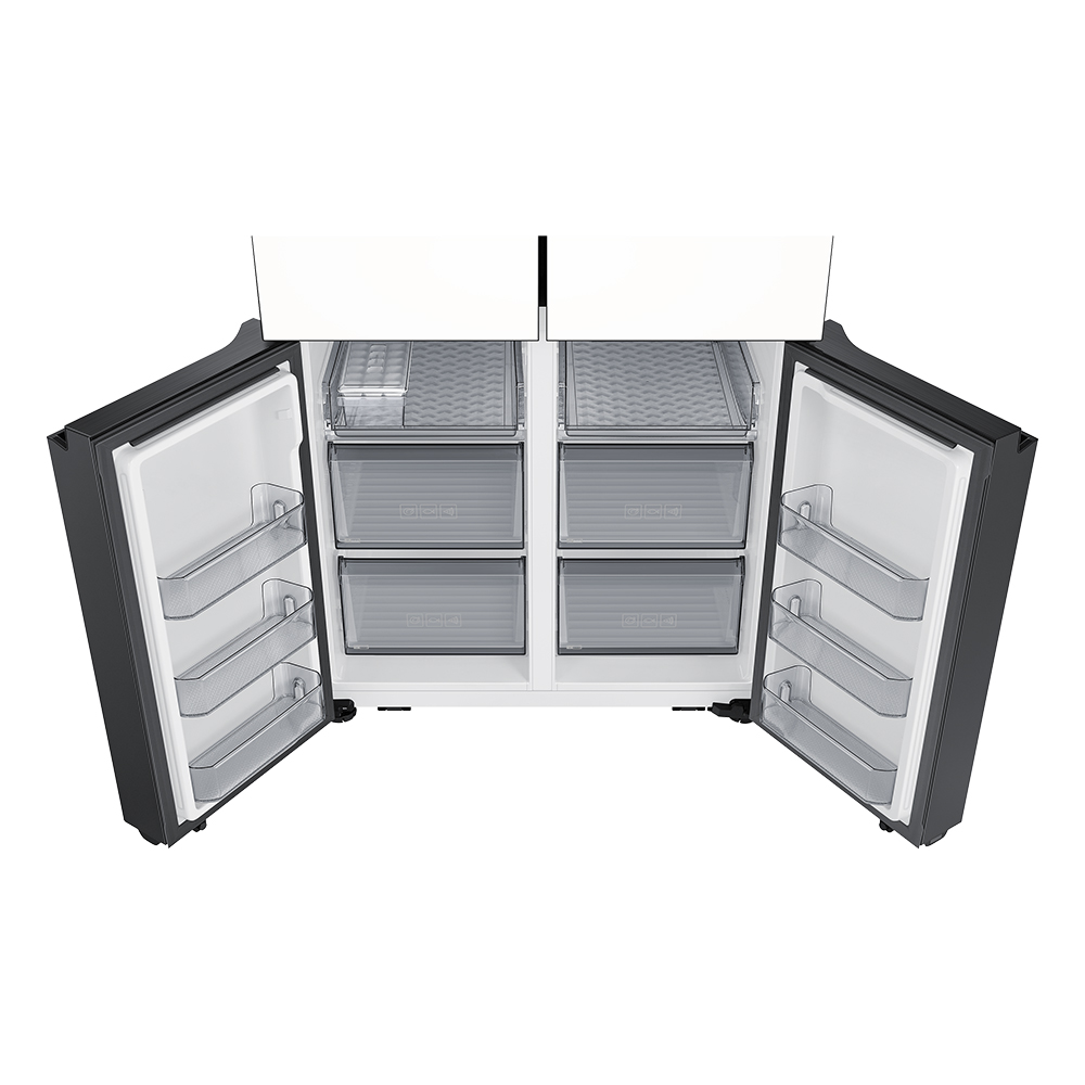 이 냉장고는 901L의 대용량을 가지고 있으며, 4도어 설계로 다양한 식품을 효율적으로 저장할 수 있습니다.